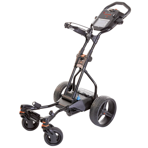 The trolley is controlled via a remote and offers a user-friendly, smaller sized handset that is rechargeable and fits under the ergonomic handle. The USB port allows the handset to be topped up and also can charge smart phones and GPS systems. The battery tray is more streamlined in this version so that it better accommodates the lithium battery. It comes equipped with two motors that offer precise steering, a tilt function to help with side slopes, and rear mini wheels for better stability. You can buy it for £799.99.