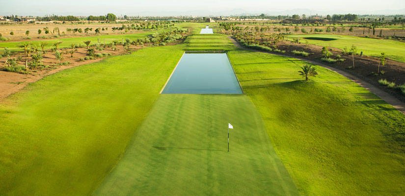 Without a doubt, the signature hole of Noria Golf Club is the 175-metre 8th which is played from an elevated tee position across a reflecting pool to a rectangular Biarritz green which sits between the water and an authentic Moroccan bell tower. This simple but visual hole will create memories for golfers that will last long after they have left Marrakech. The round of golf ends in brilliant style with the 18th hole returning to the 9th’s long water channel. You can find a traditional Moroccan irrigation system with open pits which lead to an abandoned underground canal by the tee box. This is a challenging hole with a diagonal line of bunker protecting the green and there is a lot of water to the left of the fairway! When in Marrakech, make sure to take the time out of your break to play this magnificent and authentic course.