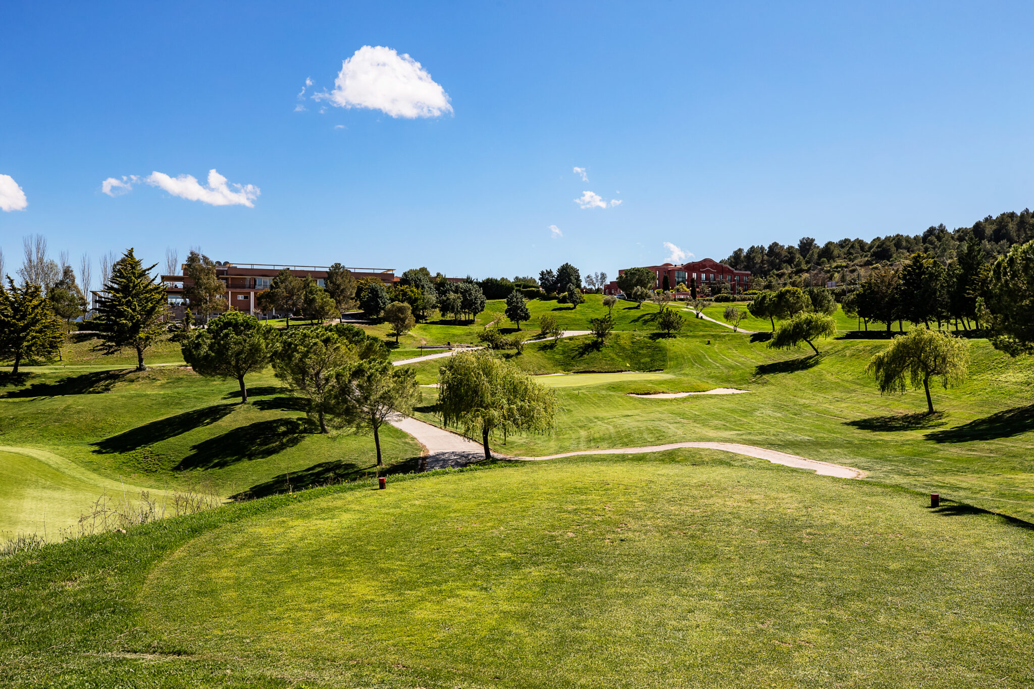 Quite hilly, we advise you to opt for a buggy for your round. The course has played host to several professional tournaments and is ideally located just outside of the city of Barcelona. In addition, the course also has an enjoyable and straight forward separate 9 holes which can be enjoyed by all handicappers. The club features much more than the 27 holes, including three swimming pools, small football field, saunas, restaurant and bar.