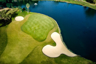 Fast greens, palm tree lined fairways and meandering streams. A stern challenge for every golfer. The main obstacle to face is the several water hazards lining and even crossing the fairways at inconvenient places.