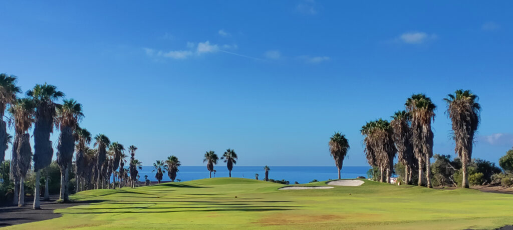 The two most striking features here are the black volcanic sand in the bunkers, and the lush tropical landscape with palm trees swaying in the sea breeze. The landscape of Golf del Sur is one of spectacular beauty, with the wide fairways lined with a variety of native flora and greenery, including palm trees and giant cacti. With its stunning greenery and landscape, it would not be inaccurate to describe the Golf del Sur as an oasis at the Atlantic Ocean.