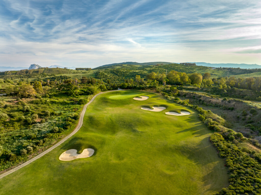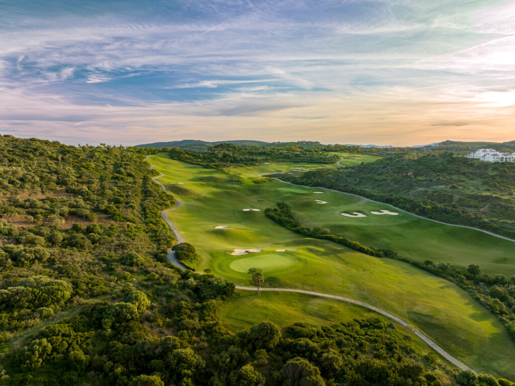 Designed as a heathland type course, its layout is divided into three different areas: the plateau area (holes 1 to 5 & 17th & 18th) where the course has the feel of a Heathland course with wide fairways & outstanding views of the Mediterranean sea & the local mountain ranges, including Sierra Nevada, The river valley where the holes meander along the valley & incorporate various water features/hazards, and the third area that provides more movement to the course.