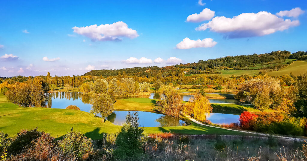 The course is surrounded by gentle rolling hills and offers an extremely varied and exciting round for all standards of golfer. From the course, you can view the stunning sights of the Italian hills, the nearby spa facilities and the charming medieval town of Castel San Pietro Terme. With such unique views on a beautiful landscape, the Le Fonti Golf Club makes an excellent choice for a round of golf when on holiday in Northern Italy.