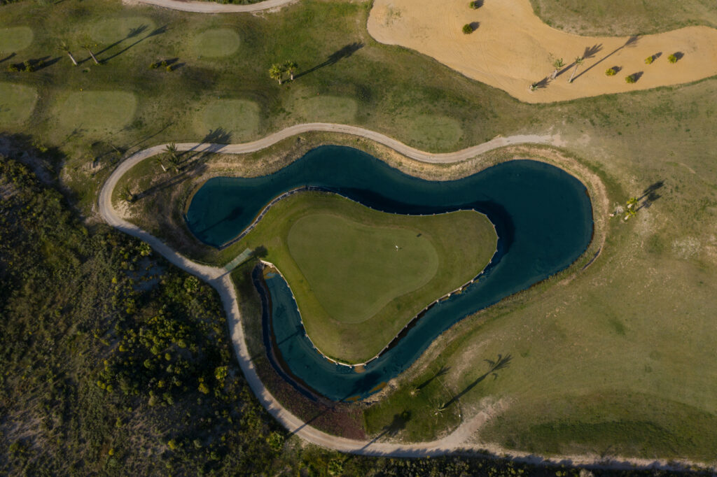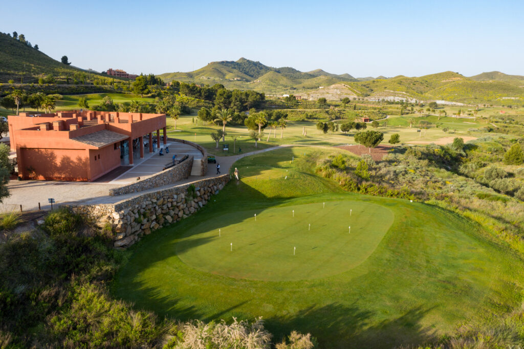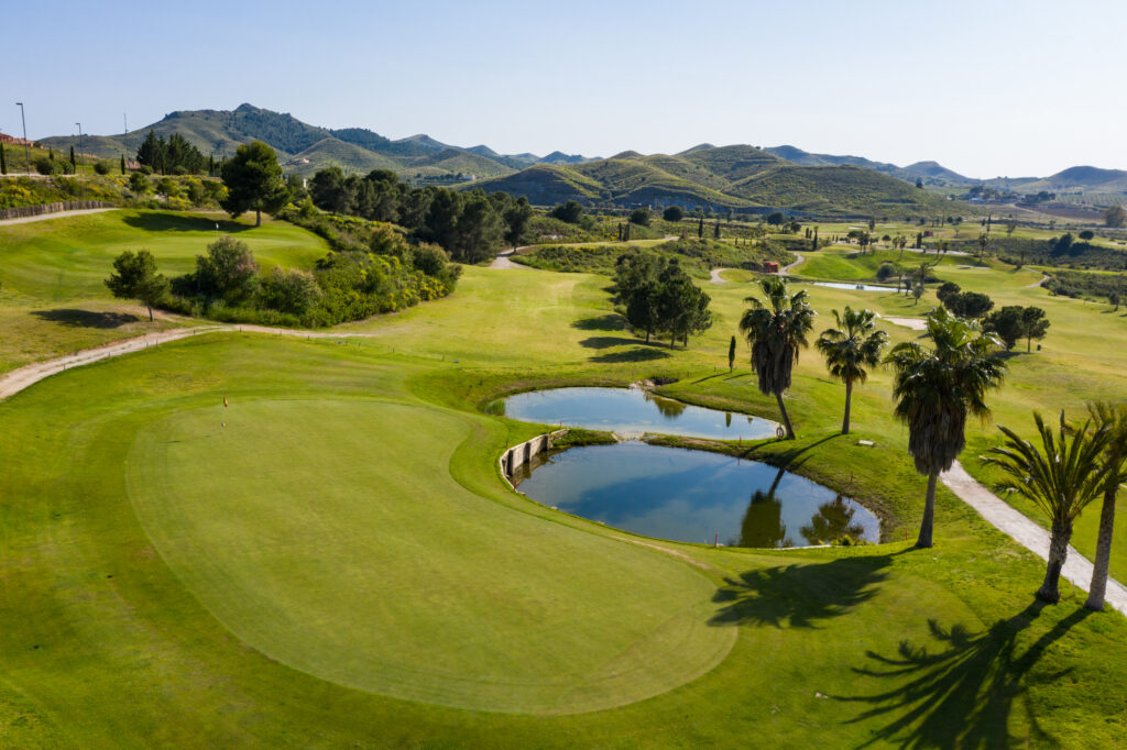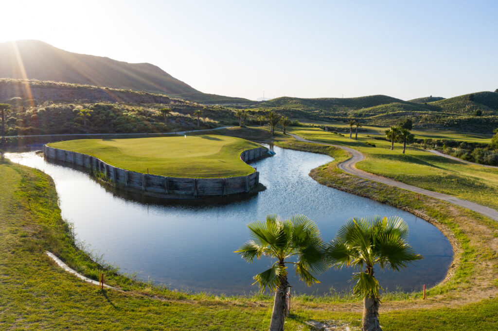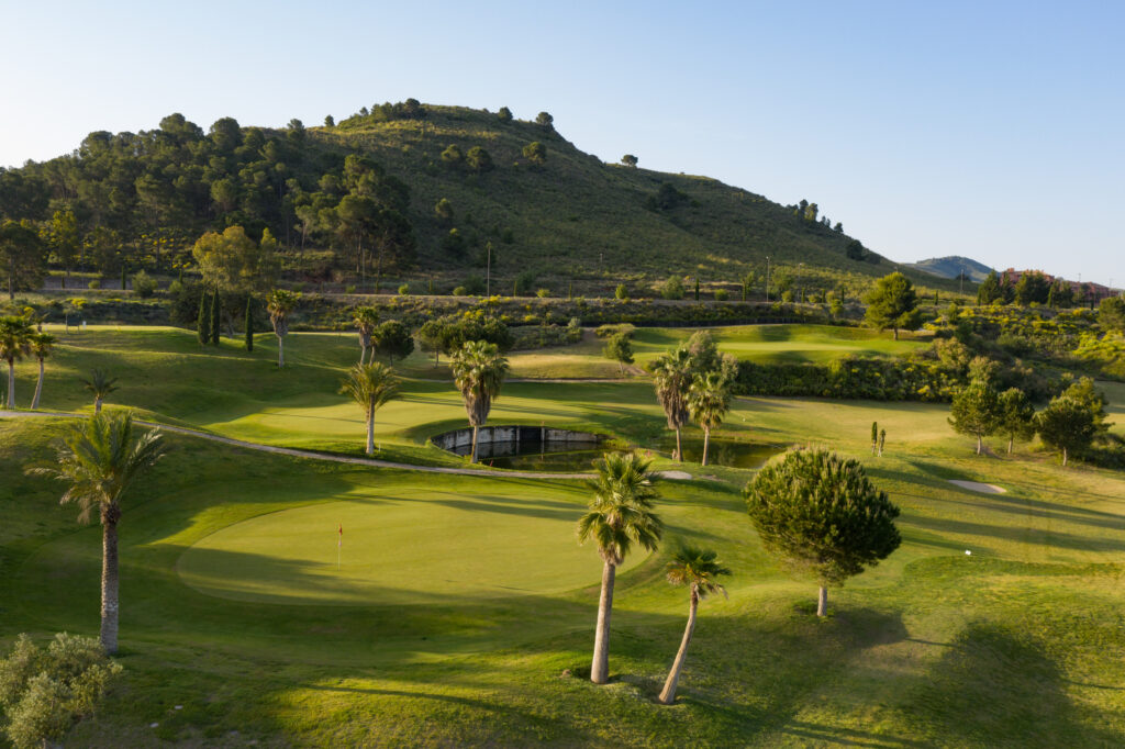 It is set in the foothills of the Almenara mountain range, using the natural terrain to create the hazards with dry ditches, water and well placed bunkers. The views across the Sierra de Almenara are stunning. The course and surrounding area are very well maintained and the fairways are wide although you'll need to strike the ball well. There are 26 white sand bunkers and several ravines requiring carries (long on occasion), to maintain your concentration and keep your game interesting and in places, the shots can be quite tight.