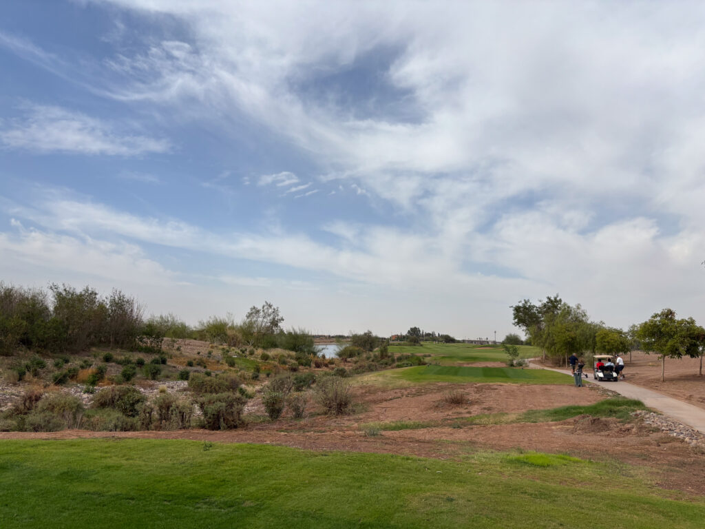 A significant feature of the La Noria course is the stunning ‘’basin’’ which divides the front and back nine, and stretches back towards the clubhouse. The landscape here at the Noria is widely considered to be unique due to the authentic differing blend of orchard, lavender field and desert landscape. These landscapes characterise the holes of the course, and create a fantastically variation of holes.