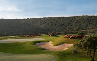 The clubhouse at Ombria Golf Club is built into existing farm ruins, giving it a castle-like look. Complete with a swimming pool, sauna, gym, restaurant and bar, this clubhouse has it all. Perfect for having a drink, or a bite to eat, with friends before, or after, an excellent round of golf.