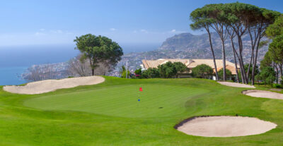 The fairways are generous, and although not a long course, there are some difficult bunkers to negotiate, greens are raised and on the small side, and natural undulations are utilised to create a stern but fair test of golf. After the par five 18th you will no doubt enjoy a spot of après golf in the clubhouse overlooking the bay of Funchal!