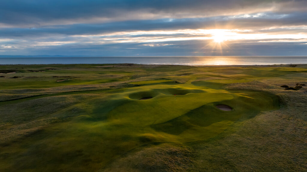 The 1st hole is undoubtedly one of the best on the course, with the sea to your left and pot bunkers waiting for any errant shots and a difficult green, a very impressive opening hole which will leave a lasting impression. From the 4th hole, the course moves inland where the design features many changes in elevation as well as a wide variety of different holes with strategically placed bunkers and concealed run-offs to make it even trickier.
