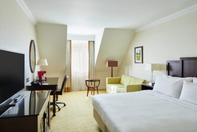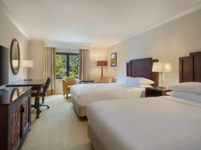 All of the guestrooms within the hotel are beautifully decorated and include plush bedding, a flat-screen TV, high-speed internet and 24-hour room service. Some of the rooms feature scenic views of the golf course and if you want, you can upgrade to one of the superior rooms which all come with robes, slippers and other added extras.