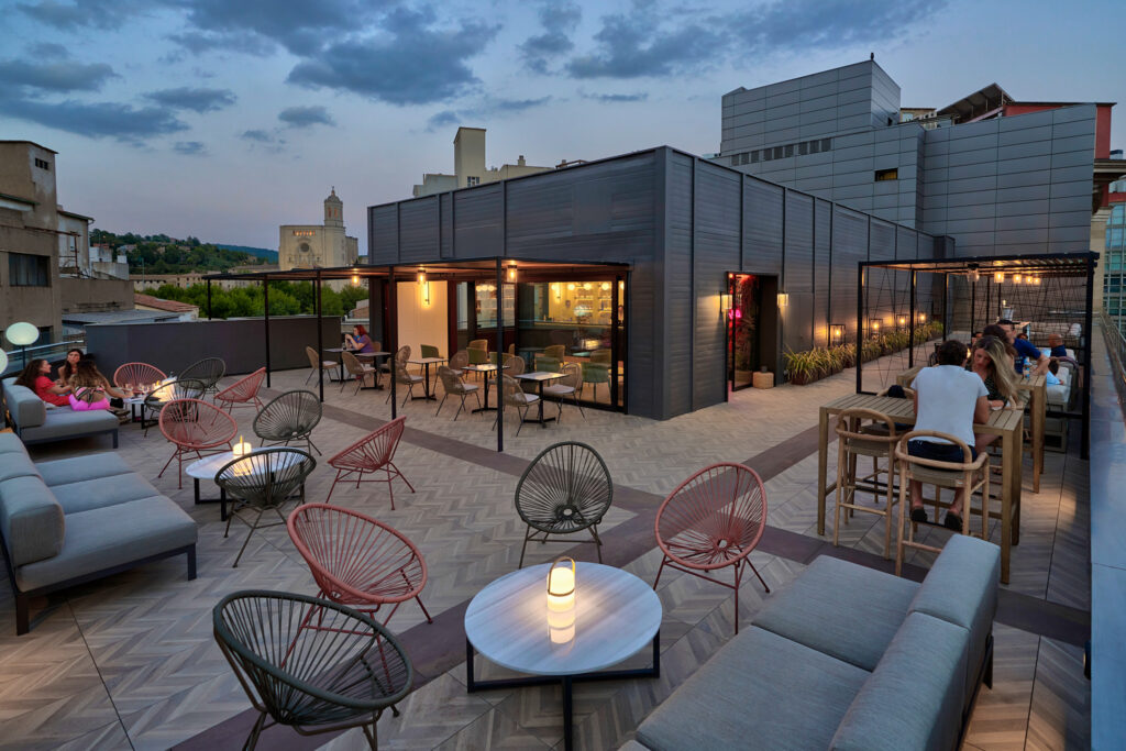 The hotel offers a wide buffet spread for breakfast to its guests in the hotel restaurant. There is also a hotel bar for guests to grab a drink in the evening, but the hotel is also located just a few steps away from the Plaça Independencia which is home to a wide range of authentic Spanish bars and restaurants.