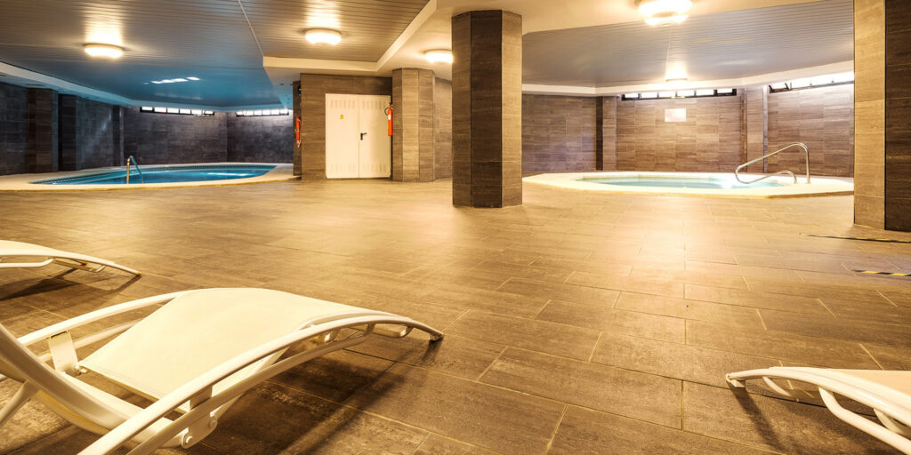 There are two, three and four bedroom apartments with twin and double bed options to choose from. The complex has an indoor pool, sauna and a seasonal outdoor pool for you to enjoy during your stay.