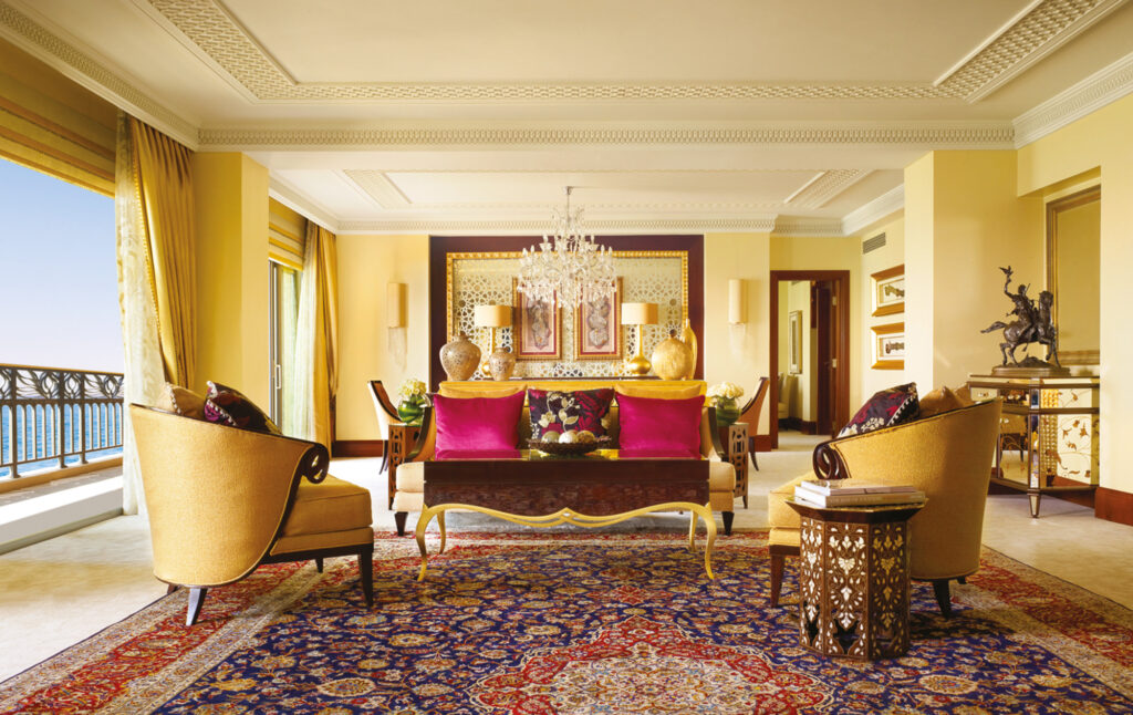 The resort is divided into three environments: the Palace, the Arabian Court and the Residence and Spa. The Palace offers 231 luxurious beachfront guest rooms whereas in the heart of the resort is the Arabian Court which features 160 guest rooms and 10 suites. The Residences offer guests exclusive privacy and luxury all adjacent to the resorts fabulous spa facilities. All rooms carry true authentic Arabic style shown in the most luxurious interiors. They feature plush drapes and bed spreads, and spacious marble bathrooms.