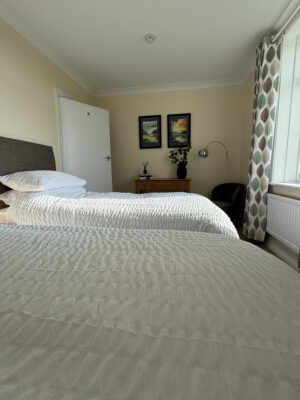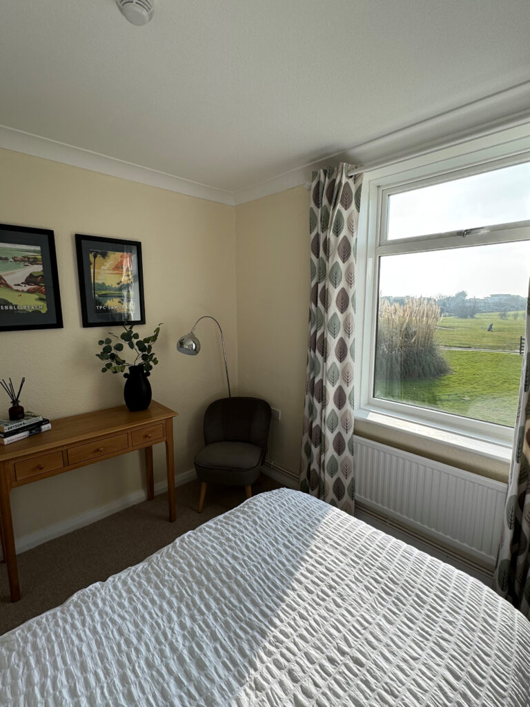 Each flat is thoughtfully arranged to ensure comfort and convenience. With spacious twin rooms, modern en-suite bathrooms, and dedicated areas for relaxing or storing golf gear, the setup is perfect for pairs, small groups, or visiting societies. Natural light and coastal views enhance the experience, while modern touches—like in-room refreshments and close access to clubhouse amenities—ensure a stay that feels effortless yet refined.