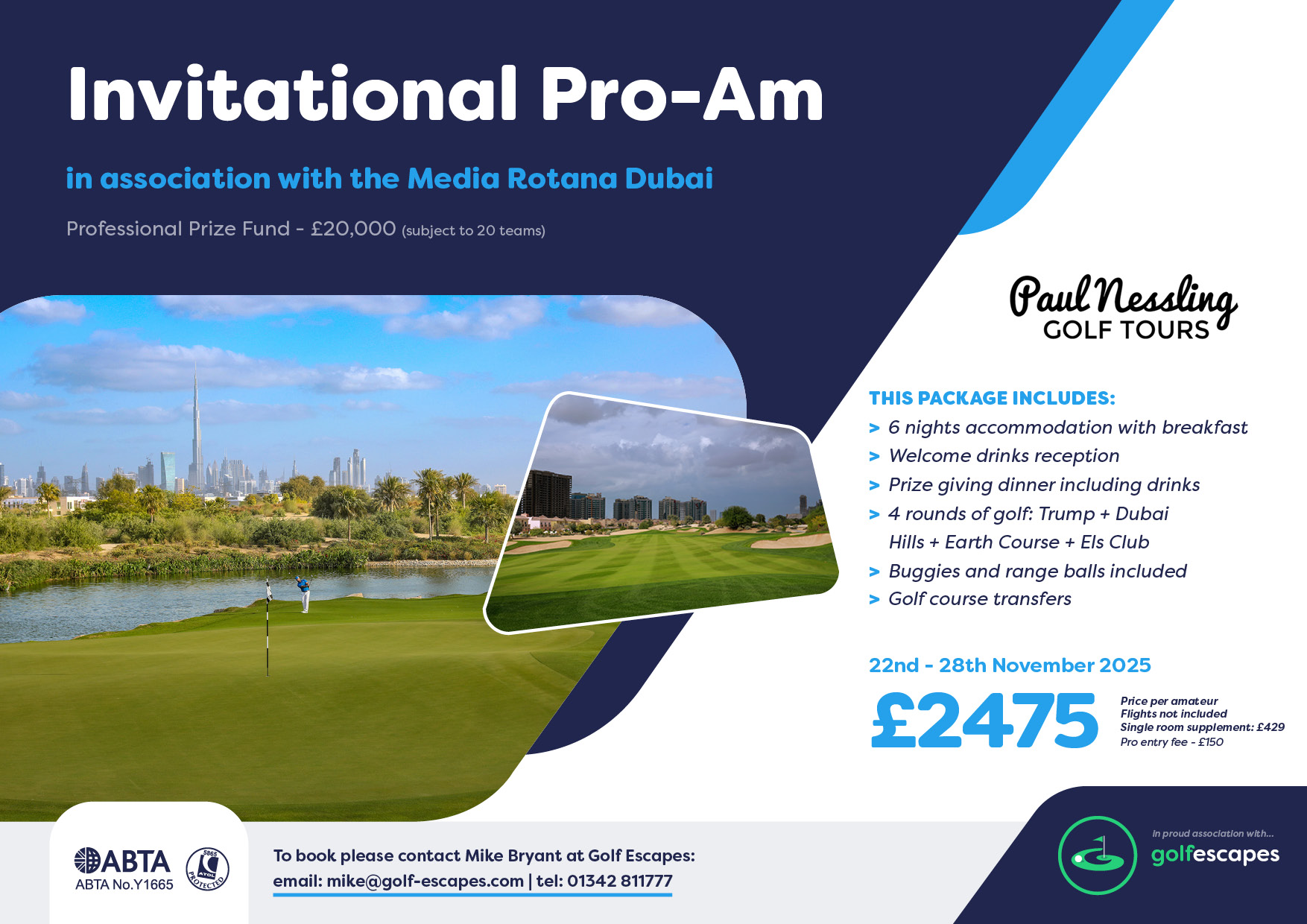Enter your team (3 amateurs + 1 Professional) today and look forward to a fun-filled week in the sunshine where you’ll play alongside your Professional in a team event with some great prizes to be won. In all our events the emphasis is on having fun and we have teams of all abilities. These events are a great opportunity to spend some time with your local Professional and see exactly how they tackle the courses under full tournament conditions.