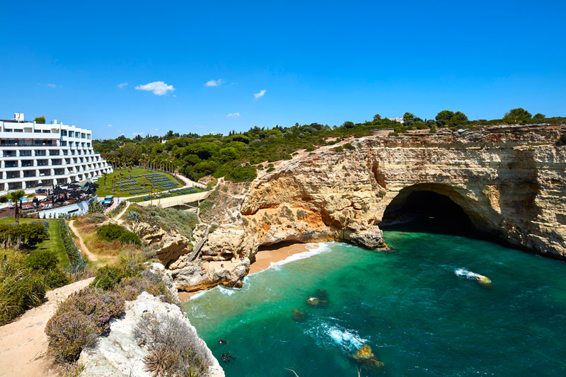 Situated on the clifftops of the Senhora da Rocha Beach, giving a panoramic view of the Beach Coves and the Atlantic Ocean below, the Pestana Viking has access to a variety of golf courses nearby to suit golfers of all abilities. If you want to venture away from the food and drink at the hotel, then you will find many local bars and restaurants located only a short walk or taxi journey from the hotel. If you’re looking for great food or tapas our recommendation would be Tasca 26 which is a 2-minute taxi journey or a 10-minute walk.